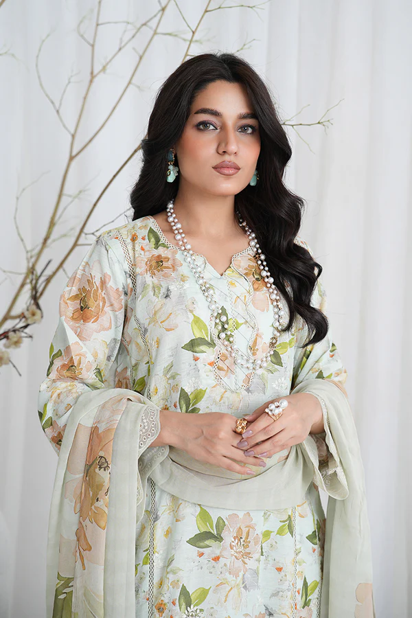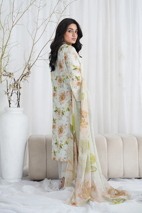 Introducing JH-841-AFR, a beautifully curated Pakistani Lawn 3-piece suit that celebrates the art of femininity, tradition, and effortless elegance. Featuring a delicate combination of Chikankari embroidery and artistic printed lawn, this ensemble is perfect for the woman who values cultural charm and modern sophistication.